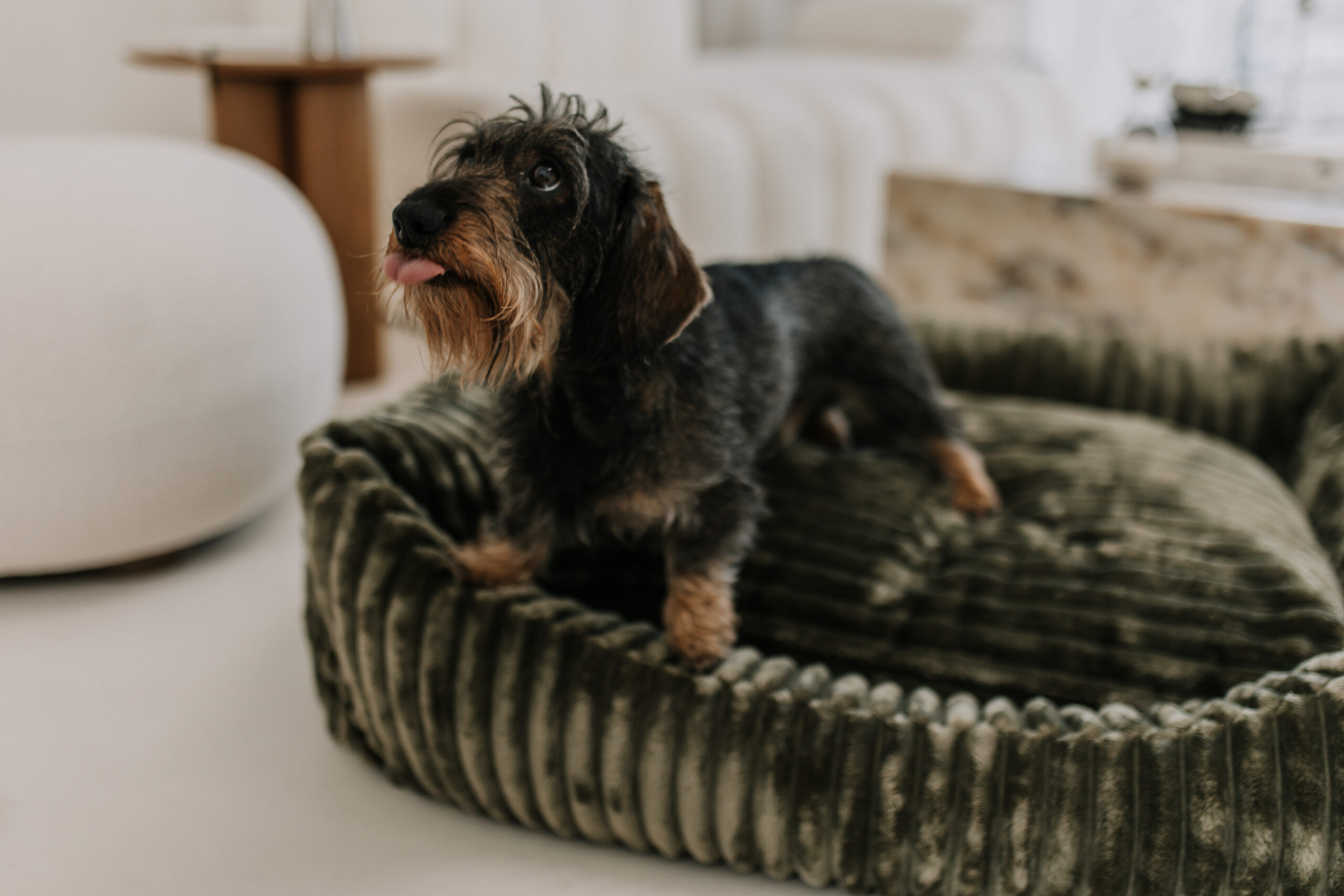 Die Sitzheizung kann ins Körbchen integriert werden, beispielsweise in unser rundes Hundebett Circo.